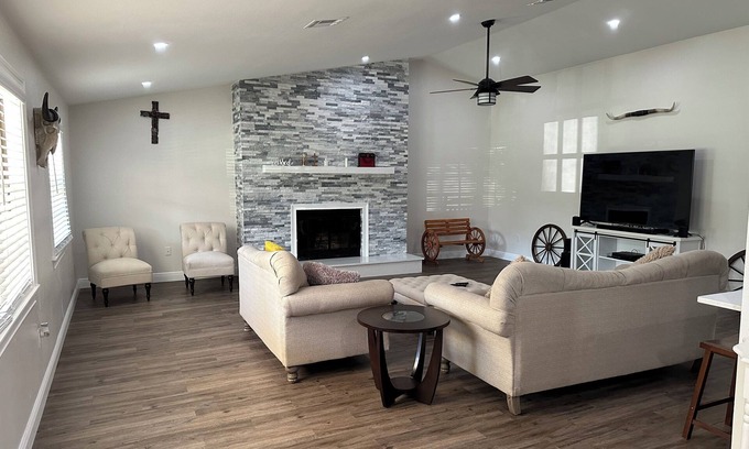 Charming 4-bedroom 2 bath farmhouse in lovely New Port Richey with WiFi, AC is located in Port Richey. Charming 4-bedroom 2 bath farmhouse in lovely New Port Richey with WiFi, AC provides accommodation, featuring Bedding/Linens, Wellness Facilities, Fireplace/Heating, among other amenities. This Other features Bedding/Linens, Wellness Facilities, Fireplace/Heating, to make your stay a comfortable one.