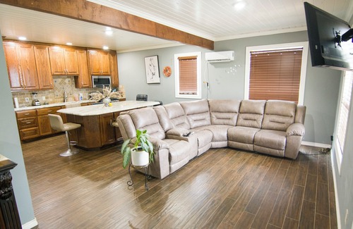 Located in Longview, this farmhouse is a dream. With 4 bedrooms, including a phenomenal king bed, guests will have plenty of space to relax. The farmhouse offers WiFi, heating, AC, and a washing machine for convenience. Three bathrooms ensure no one has to wait in line. We think our place will help you experience everything Longview has to offer. The farm is 55 acres with 2 ponds. One pond has catfish and bass. We also can offer horse stable rentals for those who come for the barrel racing we have a 10 barn horse stable and training area to offer! Plenty of fun to have here! Best part about it everything is close !