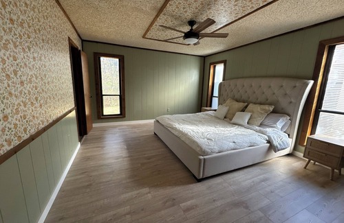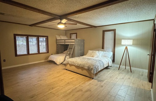 Your Longview adventure begins at this fabulous 4-bedroom farmhouse. With 1 king bed, 3 queen beds, and 1 bunk bed, there's plenty of space for everyone. Enjoy the cozy living room with a sofa bed for extra sleeping arrangements. This adorable property offers WiFi, heating, AC, and more for your comfort. We look forward to hosting you at our place.