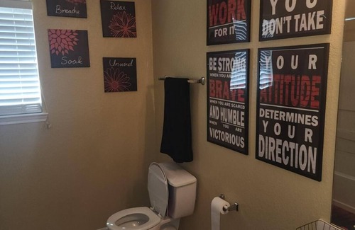 This 4-bedroom 2.5 bath house in Baytown is perfect for your escape. With a king bed, 2 full beds, a bunk bed, a queen bed, and a roll-away bed, there's plenty of space for everyone. The 2 full bathrooms even have a bathtub for a relaxing soak. The cool and serene atmosphere of this awesome property will make your stay truly unforgettable. Three minutes from the nearest Wal-mart, 40 minutes to both Kemah Boardwalk and fantastic Pleasure Pier and Galveston. If that's a little too far, you're only 15 minutes from the nearest waterpark. This space is perfect for family, a girls trip, small gatherings, or just a private staycation. Either way, you will feel right at home. Feel free to reach out to us during your stay - we're happy to suggest local spots to check out.