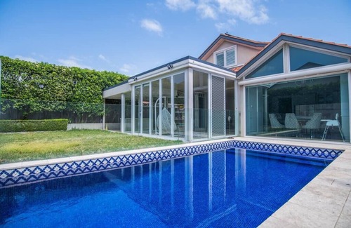 Take it easy at this unique and tranquil getaway. This house located at the heart of Chatswood, with a quiet neighbourhood yet convenient locations. 4 bedrooms plus 3 bathroom which is perfectly suit 8 of you! The fully equipped kitchen comes with different variety of cookware which is even suitable for a long-term stay, enjoy the pool in the backyard, what an amazing place!