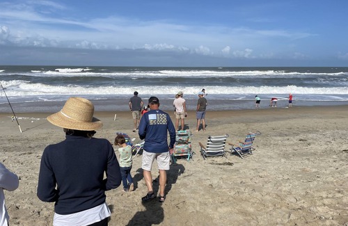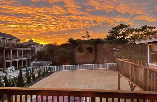 Enjoy the ocean and large salt water pool in vibrant Duck NC from this quaint 5-bedroom cottage. Only 400ft to beach with lifeguard. Surf fishing. Access to Sound boardwalk and kayak launch. Short walk to Duck restaurants and shops. Sleeps 14 With 3 queen beds, 1 full bed, 5 twin beds, and 1 bunk bed, there's plenty of space for families and friends. Two decks and large screened porch. Kitchen, dining and TV great room. Screened porch w dining table for 12. Poolside shaded entertainment room w large seating area & TV, sand box, 3 hammocks, 2 swings. Game room w ping pong and foosball. Laundry room and office space. Bikes, beach chairs, beach umbrellas, beach toys provided. Propane and charcoal grill and new smash burger grill. Extra refrigerator for drinks. Kegerator with one beer keg provided.
