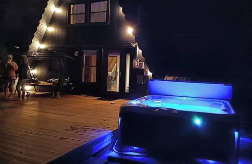 Discover this enchanting 2-bedroom A-frame cabin in Shohola. With a cozy king bed and a comfy futon, patrons will feel right at home. This peaceful retreat offers modern amenities like WiFi, a washing machine, central heat/AC as well as a wood stove! Enjoy entertaining guests on the massive deck fully furnished with sectional, deluxe swing chair, deluxe hammock, as well as a fire pit. Spend the day at the nearby private TWIN LAKES! The historic town of MILFORD is a mere 10 min away w/ plenty to keep the entire family busy. Then unwind in the evening in the saltwater Jacuzzi in the privacy of your own yard!