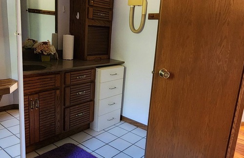 An oversize shower and roomy bathroom has plenty of room for 2 and the custom kitchenette is adorable. We have fiber wifi available as well. The garage has been converted to a unconditional space and also is the separate entrance to the apartment.