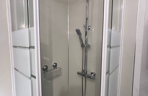 The space includes a comfortable double bed, a fully equipped kitchen to prepare your meals, and a functional bathroom. A very handy extra: the apartment features a washer with dryer function, perfect for longer stays.