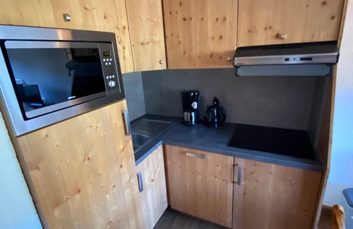 Living room with balcony, sofa with 2 pull-out beds 90, 1 TV, kitchen area: 1 large fridge with freezer, 1 dishwasher, 1 multifunction oven, 1 3-burner ceramic hob, 1 hood, 1 coffee maker, 1 kettle, 1 grill -bread, 1 raclette and fondue set, 1 crepe party, 1 hand blender.