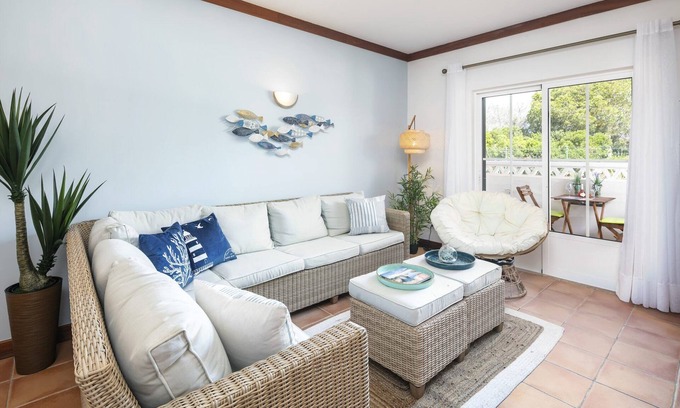 Nestled in the heart of the picturesque coastal town of Benagil, this charming apartment is the ultimate sanctuary for families, couples, and groups of friends alike. With breathtaking sea views that stretch as far as the eye can see, and just a leisurely stroll away from the stunning beach, this property invites you to unwind and rejuvenate in a tranquil setting. Imagine sipping a morning coffee on your terrace as the sun rises over the azure waters, or enjoying serene evenings while the sun sets in a cascade of colors—this is more than just a getaway; it's an experience in coastal bliss. Designed with comfort and style in mind, the apartment features two beautifully appointed bedrooms that cater to a variety of sleeping arrangements, comfortably accommodating up to four guests. The luxurious master bedroom boasts a king-size bed, ensuring a restful night's sleep, while the second bedroom with two twin beds is perfect for kids or friends sharing the space. As you explore the apartment, the fully equipped kitchen awaits, ready for you to unleash your culinary creativity with modern appliances, including a fridge, freezer, oven, and dishwasher. Share joyous meals and memories in the cozy dining area, or step out onto the spacious terrace for unforgettable alfresco dining with panoramic views of the sparkling ocean. After a day of adventure, cool off in the delightful shared saltwater pool or unwind in the comfort of your air-conditioned retreat, complete with Wi-Fi and a flat-screen TV for endless entertainment. With the beautiful Praia de Benagil just a short walk away and a variety of charming cafes, restaurants, and shops nearby, your ideal Algarve holiday begins here, offering a perfect blend of relaxation, exploration, and cherished moments.