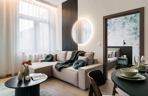 We invite you to familiarize yourself with our offer to rent an elegant and modern apartment of 62 m2, located on the 1stfloor of a charming building. This is an ideal offer for those who appreciate stylish interiors and comfortable living conditions. A spacious 2 bedrooms equipped with a large, comfortable beds providing a wonderful rest after a day of sightseeing. A bright and cozy living room with an additional sofa bed, ideal for additional guests. A modern bathroom with a shower, elegantly decorated and equipped with high-quality fixtures. A fully equipped kitchen, where you will find all the household appliances you need and enough space for cooking and preparing meals.
