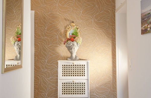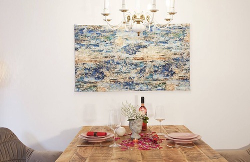 The 80 sqm apartment for 4 people is fully equipped. It offers a living room with a comfortable sofa bed for 2 people and a stylish dining area. In the bedroom, a large box spring bed (180 x 200 cm) invites you to relax and unwind. The bathroom pampers you with a shower and bathtub. The kitchen is spacious and fully equipped with e.g. B. Nespresso machine, dishwasher, microwave, fridge-freezer, toaster, oven and much more.