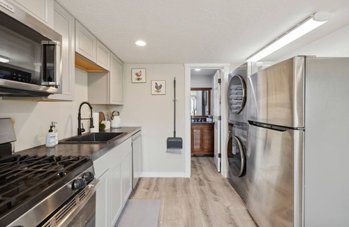 Amenities include AC and heater, full washer dryer, stove, refrigerator, wifi. Large lawn, nearby walking trail, and livestock on the property make this quaint location lovely for a year round retreat.