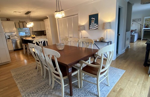 Our cute 4-bedroom family-friendly beach house sits bayside on a quiet cul-de-sac in the Normandy Beach section of Mantoloking, NJ. Great sunset views with a boat slip and dock, the house is just a half mile (walk, bike, or drive) to the ocean. The house can sleep up to 13 people, so everyone can sleep comfortably after a long day in the sun. One of the bedrooms also doubles as a kids' playroom. Our backyard is a great place to crab or fish, or even to dock your boat if you have one! The beach association has a playground which is perfect for babies and kids, tennis and basketball courts, and is just a short walk or scooter ride away. We are close to both Point Pleasant Beach & Seaside Park Boardwalks which has fun activities for the whole family! Eight (8) Normandy Beach badges are available for use during your stay and Four (4) Tennis Badges, available upon request, can be used at the Normandy Beach Association courts.