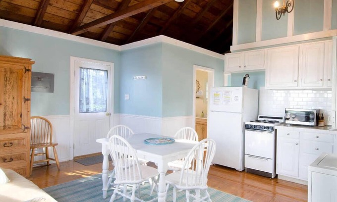 Beautifully renovated cottage, freshly painted with beadboard throughout most of the cottage, new decor (including couch) and tiled kitchen counter top.