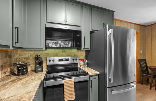 Welcome to Lutheridge Cabin - a cozy two bedroom home located at the popular Lutheridge camp in Arden, NC. Located just minutes to shopping, dining, AVL airport, and so much more, this home is awaiting your arrival. The inviting porch with rocking chairs and wooded views is a great spot to take a deep breath and relax. A brand new spacious kitchen is equipped with all of the basics you need to enjoy preparing a meal. The living room offers comfortable furnishings where you can stream your favorite shows on the large screen TV. A gas log fireplace is available to use during the Winter months as it adds warmth to the space. A dining space is available to sit down and share stories over a meal together with your loved ones and the two bedrooms offer comfortable beds - a Queen size in the primary bedroom and two Twin sized beds in the second one. This home comfortably sleeps 4 guests. Sorry, no pets are allowed.