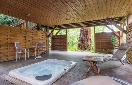 Under the cabin, a private Jacuzzi on a 40 m2 wooden terrace.