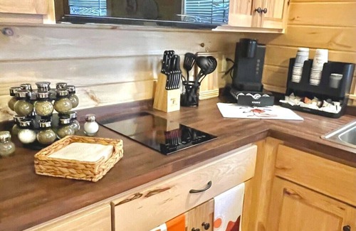 This cozy cabin offers comfortable accommodations for guests with its spacious one bedroom with a plush queen bed. It also offers a bunk bed in addition to the 2 single beds in the loft and a comfy reclining couch. Rest assured with air conditioning, ensuring the ideal temperature for a tranquil rest, regardless of the season.
