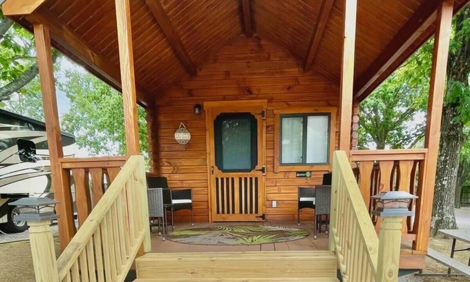 Welcome to our charming cabin, nestled in the heart of the renowned Northern Kentucky RV Park. Upon entering, be embraced by a warm ambiance that effortlessly melds the rustic charm of the cabin with the allure of the surrounding attractions. Enhance your stay by relaxing on your private porch, savoring moments of peace while taking in the picturesque views that this cabin has to offer.