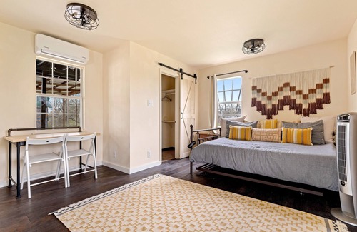 Escape to our stylish cabin on 5 acres near the Circuit of The Americas. Modern design, hardwood floors, and plenty of light create a cozy vibe. Sleeps up to 4 with a queen-sized trundle bed with a full-size pull-out.