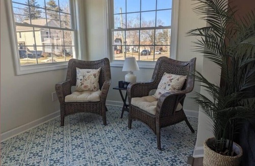 Our home was built in 1900 and has modern conveniences including Wi-Fi, smart TV and two computer work stations. Relax with a morning coffee or evening glass of wine at the local, handmade Amish island or in the sunroom.