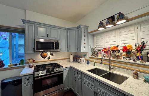 The house was our mothers and is lovingly decorated with antiques, art, and handcrafts.