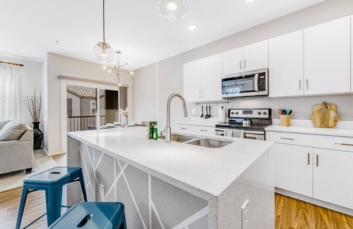 Whether you're ready to hike scenic trails or practice your golf swing, this three-story condo puts you right in the heart of the action. Pops of color and lovely wall art greet you as you enter the living room. Cozy up on the sectional with a vacation read, or watch your favorite shows on the flat-screen TV. Two can perch at the kitchen bar while the chef prepares meals in the modern kitchen that boasts stainless steel appliances. When it's time to eat, four can dine at the sunlit table.