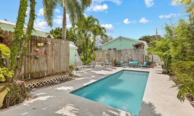 Your Key West adventure begins at this charming 1-bedroom cottage. The lovely bedroom features a comfortable queen bed, perfect for a good night's sleep. With amenities like an 8 x 24' heated pool, tropical landscaping, a private deck, WiFi, and a washer and dryer, guests can relax and unwind in this excellent space. Experience the magic of Key West at our ample-size cottage.