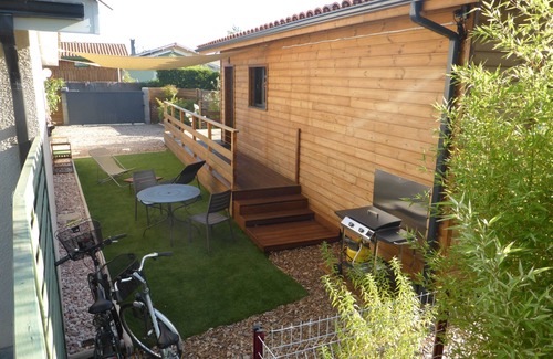 The gite, wooden house of 50 m2 with its large terrace of 25 m2, its small landscaped garden and its relaxation area will be your refuge for a few days or weeks.