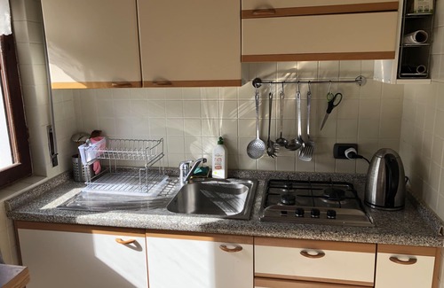 The living / dining room is like the other rooms furnished with tasteful Italian wooden furniture and has a stereo, a television with satellite system and a gas stove, it can be snug and warm in the winter and autumn. In addition, you can enjoy both the sofa and the dining table a great panoramic view.