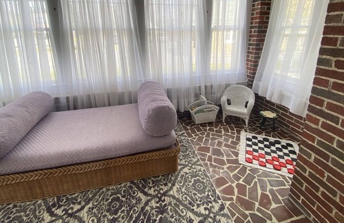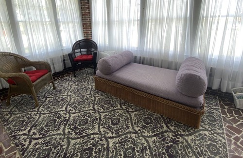 This precious 1940's cottage showcase stunning hardwood floors, beautiful lighting fixtures, sleeping accommodations for 5 people, and a beautiful sunroom. Whether traveling for work or play – we have you covered! All of the 40's charm in an idyllic setting with a deep backyard landscape, tree lined sidewalks and city convenience. A home with lots of history and inviting you to create more of your own! There is a shared fire pit and seating in the shared back yard space.