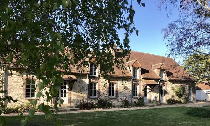 La Longère is located in a wooded park of 3.7 hectares (garden, small wood, meadow, two ponds) away from the city. Welcome your family and friends, up to 12 people, out of sight, enjoy the calm and tranquility of the place and the freshness of the house. Only 1h15 from Paris Porte d'Orléans, a small Eden.