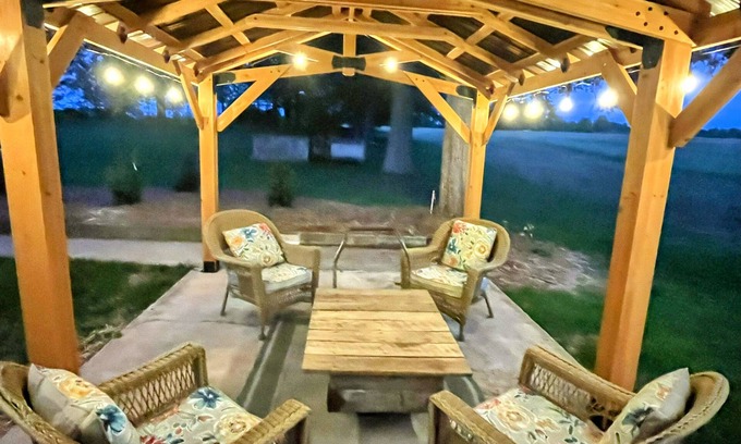 Located in East Bend, this house is a dream. With 1 bedroom and 1 bath, laundry room, WiFi, heating/AC , completely equipped kitchen and more, guests will find everything they need for a pleasant stay. The serene atmosphere of this property makes it the perfect retreat for those looking to unwind and relax. Amazing sunrises and sunsets over a bottle of local wine. We have an amazing covered patio with a gas fire pit for your enjoyment and a private porch to view sunsets. It a great place to call homebase while you're away, we hope you enjoy your stay.