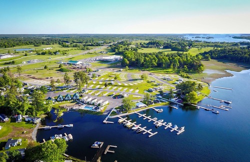 Experience the charm of the 1000 Islands and the St. Lawrence River with our colorful tiny-homes, each named after a local island! Whether you prefer to be close to the action or nestled deeper into the park, our Cottages at Swan Bay Resort offer the perfect glamping experience for savvy travelers.