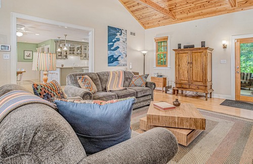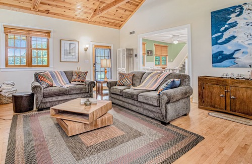 Inside, hardwood floors, vaulted, wood-paneled ceilings, and an open layout combine with modern style to create easy cottage charm. The chef will love the fully updated kitchen, with stainless steel appliances, granite countertops, and all the gadgets they need to whip up a feast. Everyone can dine together at the adjacent farmhouse table before heading out to explore. When you return, relax with a little music courtesy of the Sonos speaker, upload some pics to social media with the free WiFi, or watch a little TV. Fire up the gas grill on the porch for a family barbecue and call it a night in one of three comfortable bedrooms. No matter if you’re here for a wedding, a vacation, or just a quick getaway, you’ve found the perfect spot - all that’s left to do is book.