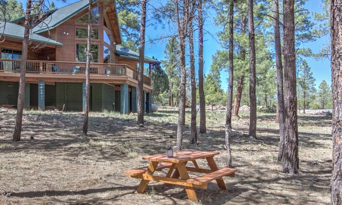 This beautiful high-end Cabin sits on 2 acres of tall ponderosa pines, only two hours from Scottsdale, Arizona. Located in the beautiful rim country of the Coconino National Forest there is room for a large family, endless ways to soak in the outdoors, and only an hour from majestical Sedona. Enjoy the views from the large deck, indoor/outdoor wood-burning fireplaces, and great areas to enjoy and relax. Property is accessible year-round with county-maintained roads leading to the highway. We'll be available to answer any questions while you stay at our place.