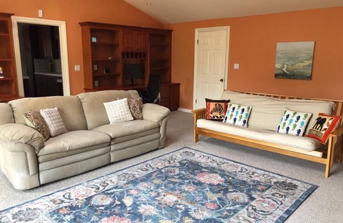 This expansive single-story home with 3 bedrooms and 2.5 bathrooms, it offers ample room for all your needs. Stay connected with high-speed Wi-Fi that blankets the entire house. Prepare gourmet meals in the fully equipped, generously sized kitchen, and unwind in the large family room or elegant living room. Need to focus on work? You'll find three dedicated workspaces thoughtfully placed throughout the house.