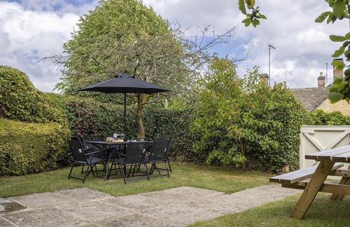 Enclosed garden with courtyard at the rear and lawn area to the front with wooden picnic bench, outdoor table seating six, parasol and charcoal BBQ (available from April to September)