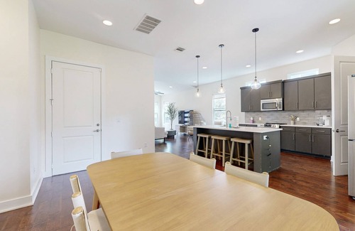 This modern gem is located close to everything you'll want to explore in Austin, and just a 10 minute drive to the airport. Relax in style with luxury amenities and a large open concept floor plan. The back patio is covered, backyard fenced in and quite large, perfect for yard games. Book your stay at this lovely Austin retreat and make unforgettable memories in the Live Music Capital of the World.