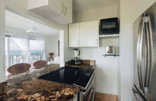 Come relax and enjoy yourself in this spacious, charming, fully equipped one bedroom, one bath, guesthouse in the heart of the East End of Saint Croix. Your guesthouse apartment is quiet, private, attractive and comfortable. You will enjoy wide open views of the Caribbean Sea, Buck Island, the sound of the waves crashing on the reef and expansive sunsets over Christiansted. Your views are truly panoramic.