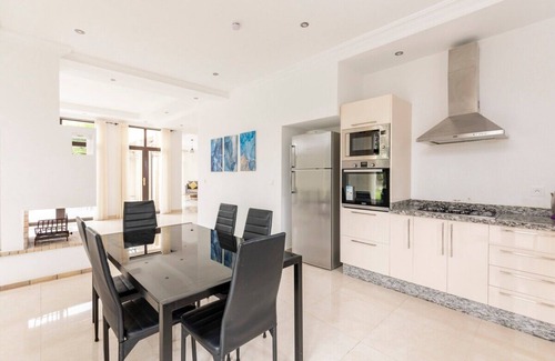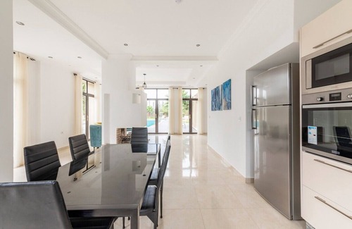 The villa has a luxury finish with a fully equipped kitchen with appliances and necessary tools, and the bedrooms, living and dining rooms are all equipped with the needed essentials for a comfortable and pleasant stay.