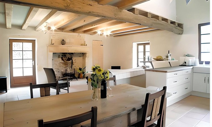 Beautifully restored 1856 farmhouse and barn set in the midst of rural France. All the charm of it's age, all the conveniences of modern life. A light and spacious conversion comfortably accommodating 10-12 people. Ideal for two families. Please note that the fourth bedroom has a low door under a beam.