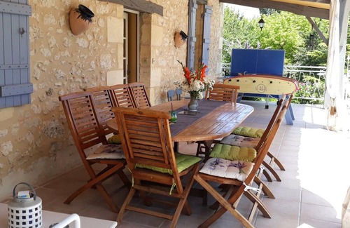 7 km from Beaumont-du-Périgord (Shops) and 9 km from Monpazier, 120 m2 house back-to-back with the owner's house and close to another Gîtes de France rental Ref. 24G377376 not overlooked. Gite without heating. Ground floor: Kitchen open to the dining room/living room with Wi-Fi internet connection. 1 bedroom: 1 bed 140x190. Bathroom. Separate WC (accessible by 2 steps). Upstairs: 2 bedrooms: 4 beds 90x190. 2 bedrooms: 2 beds 140x190. Shower room with WC. A billiard table is available upstairs. Enclosed grounds of 200 m² with garden furniture, 6 sun loungers, barbecue and swing. Table football and table tennis available. A playground, outside the garden on approximately 400m², with trampoline and slide, is available to children from the 2 Gîtes de France rentals. Possibility of walks around the lake on the property (swimming prohibited). Sheets, towels and household linen included. End of stay cleaning 150€. Restored stone house, located in the countryside on a hazelnut farm, quiet and not overlooked, with an enclosed flower garden and a secure private swimming pool. A large covered terrace will allow you to take your meals outside and enjoy the beautiful summer nights. The village of Rampieux is ideally located in the heart of the Bastides of Périgord: Beaumont-du Périgord, Monpazier, Issigeac or Villeréal (in Lot-en-Garonne) are only a few kilometers away. The nearby Dordogne Valley will allow you to fill your days and especially your head, with memories: canoeing, visits to caves, medieval castles, villages, local crafts, farmers' markets...