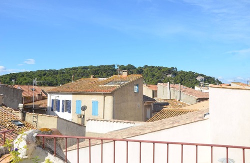 in the center of an old village in south of france;a polished rustic decoration; charming terrace with sight on the old roofs and wooden hill. Delightfull local neighbours