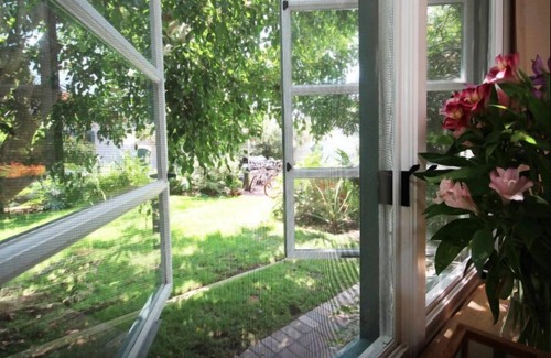 This guesthouse studio has charming 1920s Spanish architecture and a lovely tropical private courtyard. The guesthouse includes hardwood floors, a kitchenette with marble countertop, plenty of street parking in front of the house, HD flat screen TV, queen bed, marble bathroom flooring. The courtyard has two lounge chairs plus a table where four can dine. Bikes give you quick access to the beach and bay, both about six blocks away. There is also a shared BBQ in the main yard.