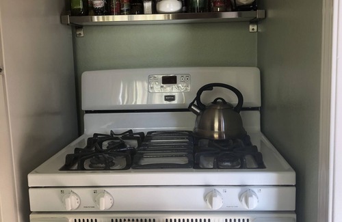 A quaint little in laws quarter with private entryway, full kitchen, and full bathroom. Find yourself enjoying the gardens on your own little hidden corner of our property. An outdoor chicken coop with vegetable, fruit and flower gardens is a great little escape from the nearby hustle and bustle of the Silicon Valley. Our unique bedroom space is up an attic like staircase that is not suitable for very young, handicapped, or elderly guests.
