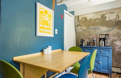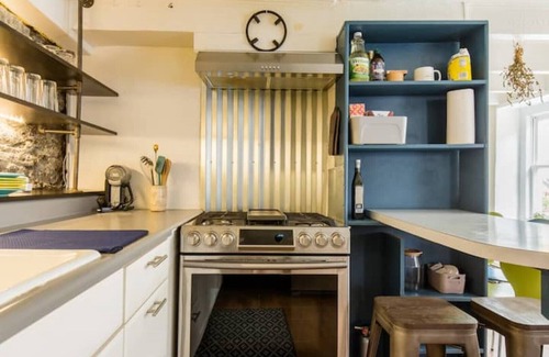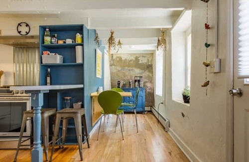 The best of both worlds: our 1870s house fits right into its historic Rondout neighborhood, but with funky modern design, style, comfort and amenities. Relax in a beautiful zen-like outdoor oasis with koi pond, seasonal stream feature, and dining and lounging areas. Walk just a few blocks down to the waterfront where you’ll find cafes, restaurants, antique stores, boutiques, and museums; grab a freshly fried donut and coffee, and watch the boats go by from a bench in the park.