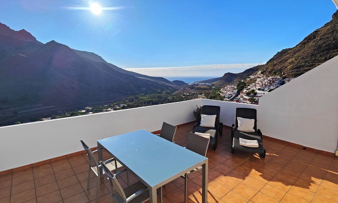 Cozy holiday home in the Agaete Valley to enjoy the mountain and the beach in one of the most picturesque surroundings of Gran Canaria, near a fishing port and one of the most impressive natural parks (Tamadaba). Housing with private access It has everything you need for the enjoyment of guests, highlighting the large terrace of about 40m. Parking available nearby.