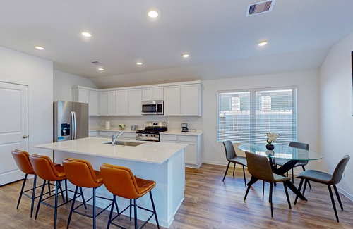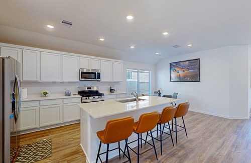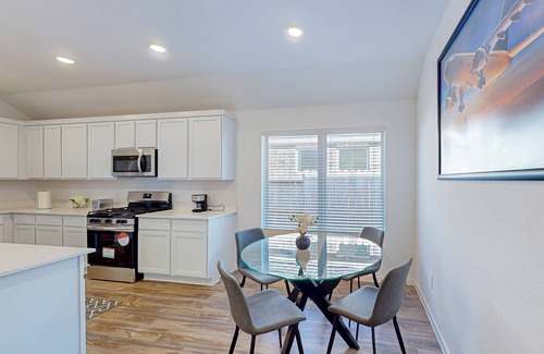Escape to this charming house in Conroe, TX, perfect for families or group of friends looking for a relaxing retreat. This home features a spacious living room with cozy sofas, a fully equipped kitchen with modern appliances including a coffee maker and dishwasher, and a dining area with a large table for family meals.