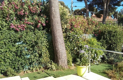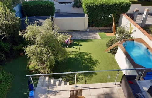 House with terrace swimming pool and sunny garden not overlooked in quiet area 100m from local shops, 200m from the Port and 500m from the Beaches, parking facility, railway station 800m.