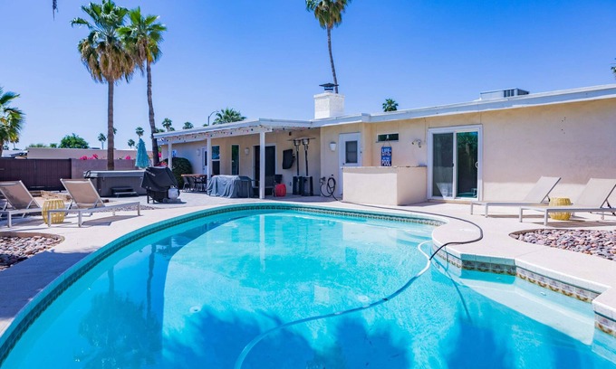 This listing is for the entire home, including the fenced-in backyard. The neighborhood is quiet and peaceful, perfect for a relaxing getaway. This beautiful 4 bedroom/3 bathroom spacious Scottsdale home includes an updated interior with split floor plan, tiling flooring everywhere except bedrooms, a billiards table and is located 1 mile from Kierland Commons. Property also features a large, open backyard with swimming pool (heating optional), hot tub, Cornhole/Bocce ball court and BBQ grill.