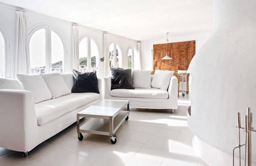 Renovated and refurbished house. Interior design with modern minimalist flair. The design, its whiteness, simplicity, the functionality of each element has been carefully considered and displays modern style mix with traditional Ibizan architecture elements.