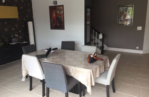 It is a spacious and pleasant house, 15 min from Bordeaux by car, very close ring road, Tramway la Gardette 15 min by foot. bus 50m from the house, 20 minutes from Bordeaux Merignac airport. close to all amenities.